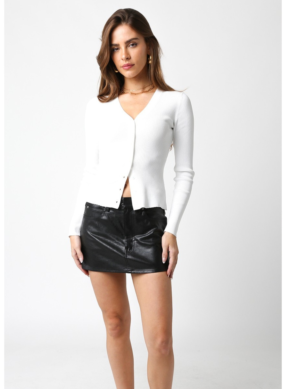 The Julie Faux Mini Skirt brings playful edge to your everyday look. Crafted from sleek faux leather, this mini hugs your curves in all the right ways while keeping things fun and fashion-forward. Perfect for pairing with crop tops, oversized tees, or fitted bodysuits, it's your go-to piece for turning heads. Whether you're hitting the town or leveling up your casual vibe, this skirt delivers that cute-girl confidence you've been craving.